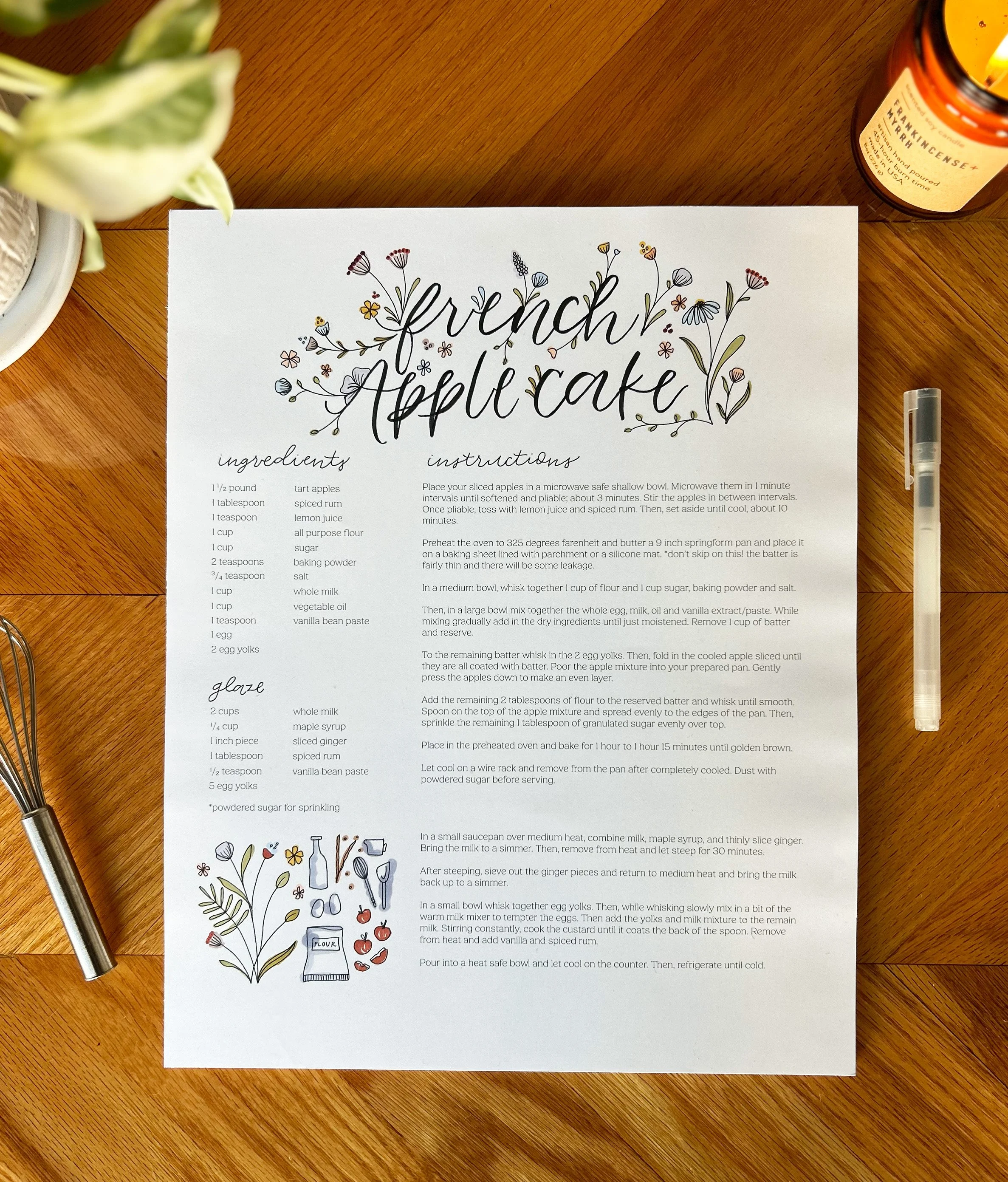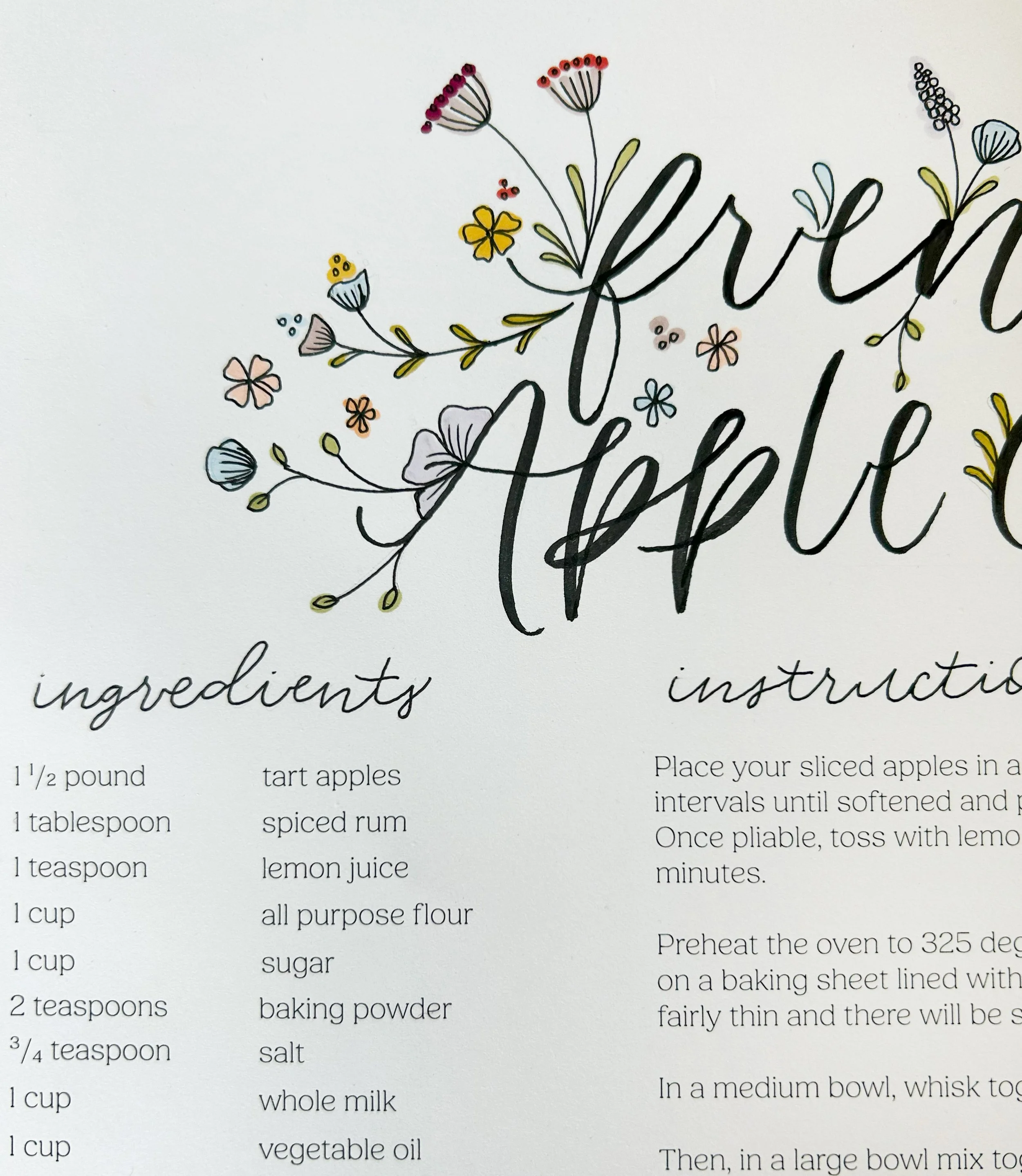 Hand Lettered Recipes | I capture prized recipes in a timeless way. Clients have shared all kinds of special treats with me- from Grandma’s Apple Pie to Aunt Sue’s Popovers, I have memorialized countless family recipes. Don’t worry- your secret ingredients are safe with me!